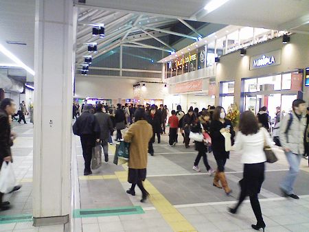 改札口の反対側に、おしゃれなモール街(2階)が出現。