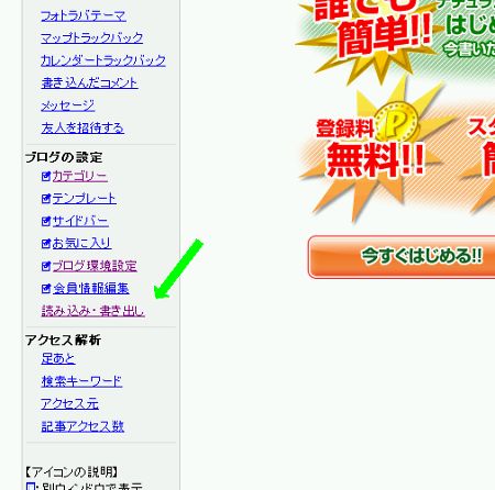 (a) ブログの設定の 「読み込み・書き出し」をClick