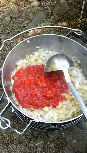 ウズラやチーズを燻製にし、豚ひれのトマトソース煮という 我が家のキャンプ料理 ど定番