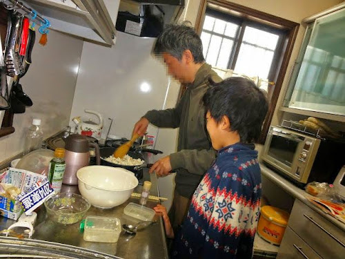 うどんをこねて作りました。Kenはカブスカウトでうどんを作ったことがあるので、なれたものでした。